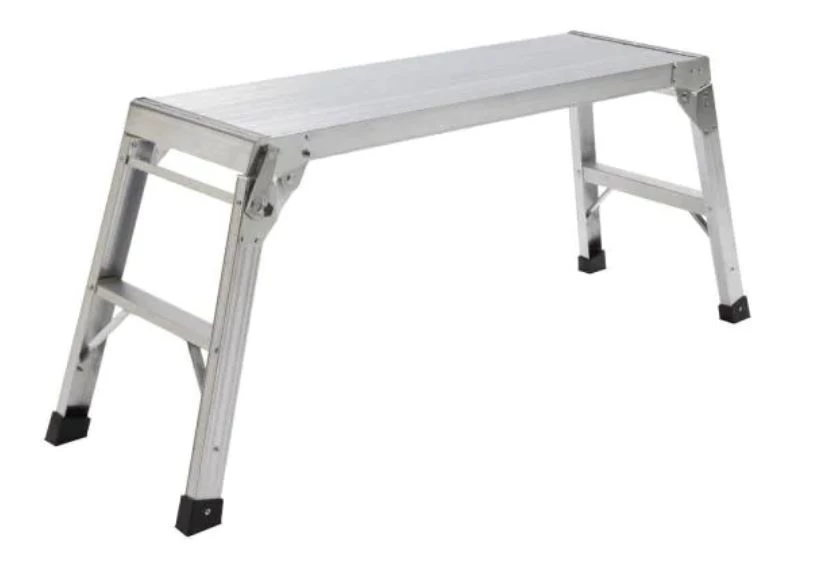 This lightweight aluminum work platform is a versatile climbing tool that’s perfect for painting or hanging drywall, while also serving as a functional work bench. The legs lock into place and fold underneath when not in use for easy storage. The 39 in. L x 12 in. W platform offers an ideal 20 in. standing height and the whole platform weighs just around 10 lbs. The non-slip standing surface and feet help keep you safe and secure.