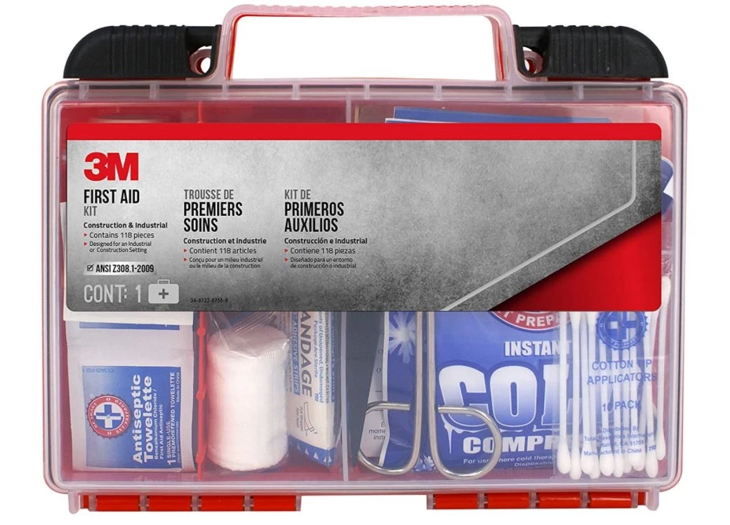 The 3M Construction/Industrial First Aid Kit is designed to address minor injuries on the job. Equipped with bandages, tweezers, ointments, a cold compress and more, this first aid kit offers a comprehensive array of essentials to help get you and your crew on the mend. The handy case helps keep all your items organized and accessible, and the built in handle makes it easy to transport the kit from one job site to the next. Preparedness is a key part of the job–so always be one step ahead when it comes to the safety and well being of your crew with the help of the 3M Construction/Industrial First Aid Kit.