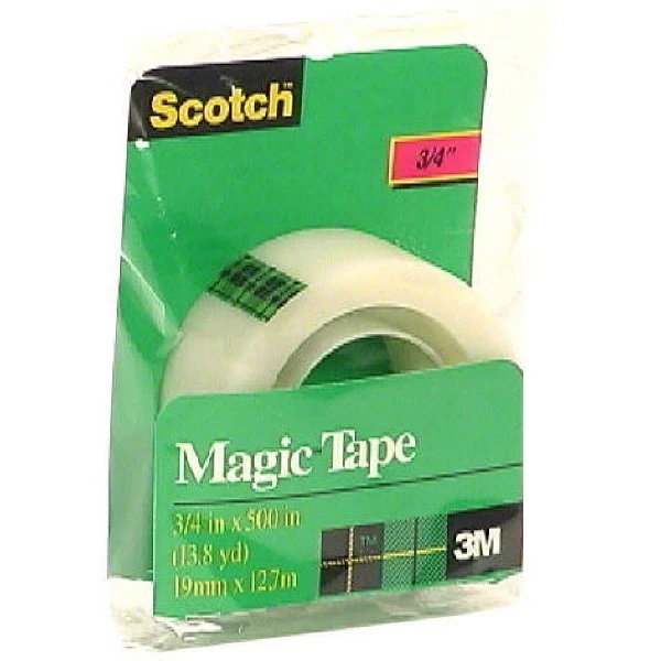 When your tape dispenser is running low, refill it with Scotch Magic Tape Refill. Scotch Magic Tape is the trusted adhesive that has been well known and used in homes, offices and schools for many years. This tape is made with the original matte finish that is virtually invisible but can be written on with pencil, pen or marker. This roll measures 3/4 inch x 500 inches and fits most dispensers.