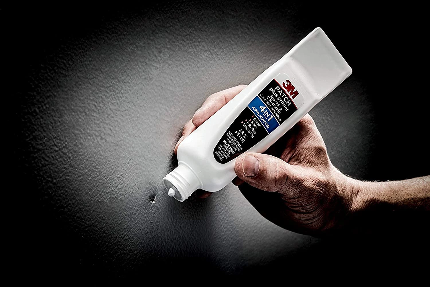 The 3Mâ„¢ Patch plus primer 4-in-1 nail hole filler includes spackling plus primer, a putty knife and a sanding pad; everything you need to complete small repairs.