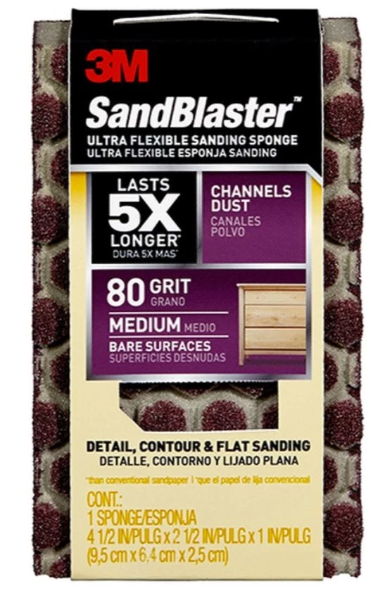 3M SandBlaster Ultra Flexible Medium Sanding Sponge, 4-1/2″ x 2-1/2″ x 1″