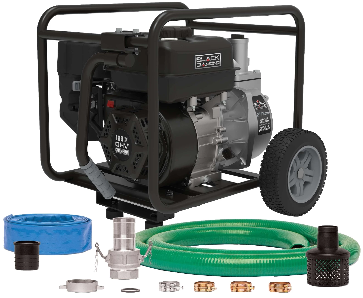 Black Diamond 2″ Semi-Trash Water Pump W/ Hose and Wheel Kit