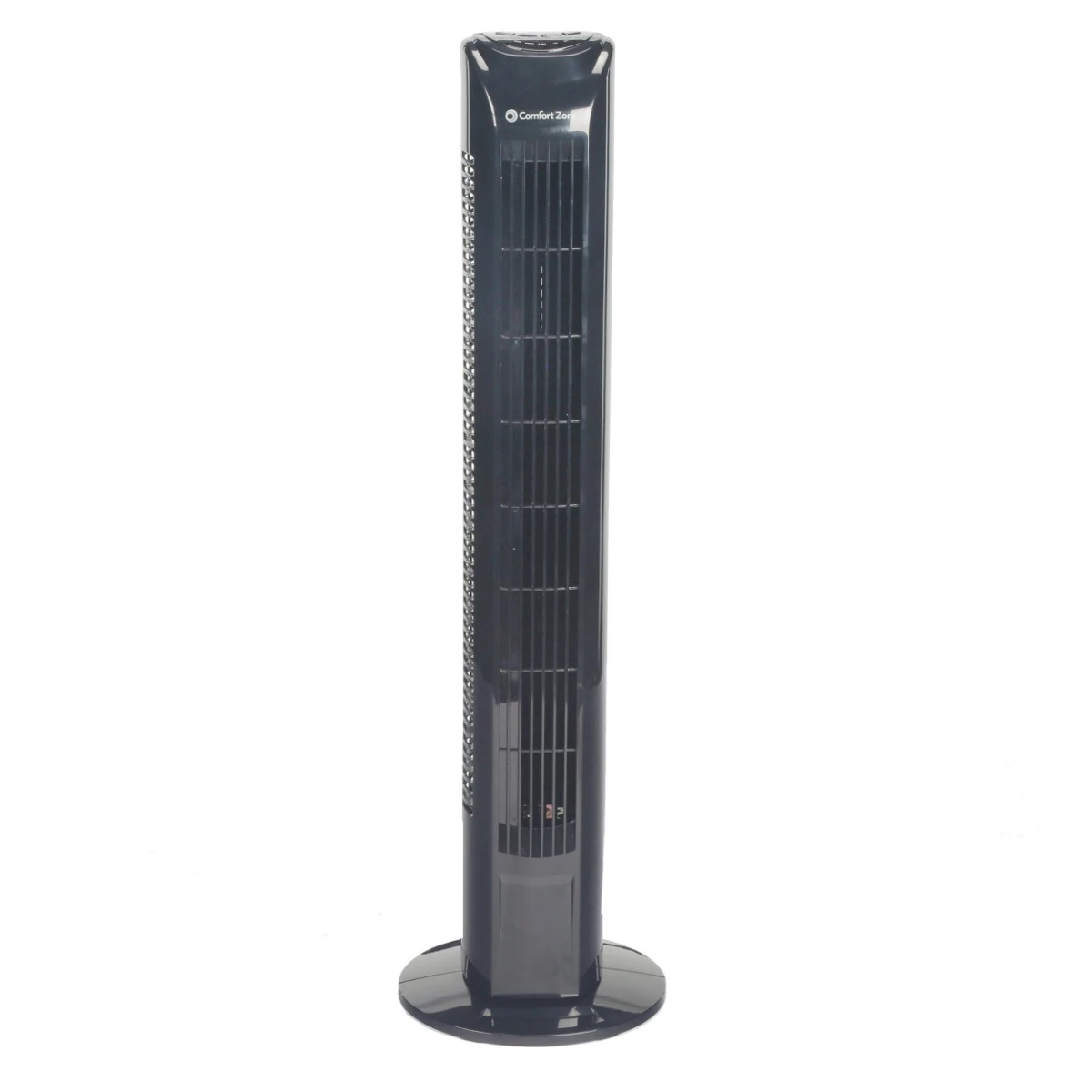 Comfort Zone 31″ Oscillating 3-Speed Tower Fan with Remote is the perfect cooling solution for your household or office space. It features three speed settings, electronic push-button controls and an electronic countdown timer. The fully functional remote control enables you to adjust speed, time and swing without having to get up for your convenience. It is made with high-performance centrifugal blades that produce a powerful flow of air without the noise. Wide-area oscillation allows for airflow to be directed to all corners of the room. The molded carry handle on the rear of fan enables you to move this fan with ease from room-to-room. The slim line design is perfect for small or large spaces, and it comes in a neutral black color so it can blend in well with just about any decor in your home or office.Over the past ten years Comfort Zone has grown to become a trusted brand, recognized nationally as a leader in the home environment category. Comfort Zone heaters, fans and humidifiers provide safe and reliable performance with exceptional value and thoughtful innovations. As a leader in reliability and safety, Comfort Zone has dedicated Engineering and Quality-Assurance teams to ensure our products meet strict quality standards such as UL, ETL, SAA, CE, CSA and NOM.