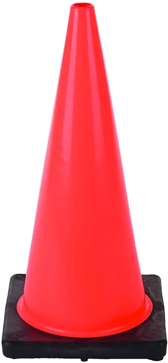 Cortina Traffic Cone, Vinyl with Black Base, 18″ Height, Red/Orange