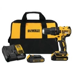 The 20V MAX* Drill/Driver kit (DCD777C2) is designed with a high-performance motor that delivers 340 unit watts out (UWO) of power. This compact, lightweight design can tackle a wide range of applications and features a 2-speed transmission and single sleeve ratcheting chuck.