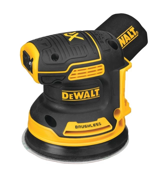 Our 20V MAX* XR 5 in. Brushless Cordless Random Orbital Sander provides the power and runtime needed to get the job done. A variable-speed dial provides ultimate speed control from 8,000 to 12,000 OPM for a variety of projects. One-handed locking dust bag attaches securely to the sander to aid in dust collection or the user can attach the sander directly to the DWV010 or DWV012 dust collectors. Its rubber overmold grip provides comfortable sanding. Replacing the 8-hole, hook-and-loop sanding paper is quick and easy.