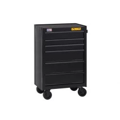 This 26-inch wide 6-Drawer Rolling Tool Cabinet is constructed of double-wall steel for strength and durability. It has six 100-pound load capacity drawers with soft close latching for smooth and quiet operation. It also has a heavy-duty keyed internal locking system to safeguard tools. Conveniently charge your power tools, batteries, and electronics from the side of the cabinet. Its load rating is 1,500 pounds with reinforced mounting channels and it has four 5-inch x 2-inch casters, two of which lock and swivel. A full-grip tubular side handle with a comfortable black overmold is included for ease of mobility. Also included are six DEWALT embossed drawer liners and one DEWALT embossed top mat to help protect the cabinet surface. Recommended with this unit is our 700 Series 26-inch wide 6-Drawer Tool Chest (DWST22644), sold separately. Look no further than our Metal Tool Storage line for your tool storage and organization needs. Choose from a variety of sizes in top tool chests and rolling tool cabinets, all of which are made of 18-20 gauge steel. All units have an 18-inch depth to fit our mechanic tools sets, and other hand tools and accessories.