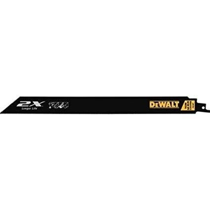An exclusive coating and preparation process provides DEWALT 2X Long Life Metal Cutting Reciprocating Saw Blades with twice the life of standard DEWALT and competitive metal-cutting blades. A unique design provides efficient cutting, and extra-durable blades helps to prevent bending and breakage. Ideal for cutting rebar, angle iron, black pipe, conduit, cold rolled steel, and other metals.