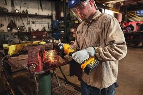 The small angle grinder has a brushless motor that elongates motor life and requires no time changing out worn brushes. The wheel stops within 2 seconds or less. Its Kickback Brake engages maximum force to stop the wheel when there is a pinch, stall, or bind-up to reduce kickback, and will shut off for further protection.