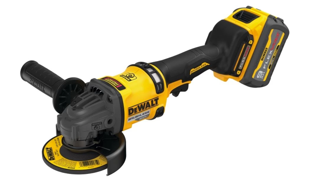 With up to 30% more power than the DCG414 60V MAX* Cordless Grinder, this FLEXVOLT 60V MAX* Cordless Grinder adds even more power to our line of powerful grinder tools. It’s part of our PERFORM & PROTECT™ product line with Kickback Brake and the Anti-Rotation E-CLUTCH System. The grinder also delivers 13 Amp motor equivalent power with a no-load speed of 9000 rpm.