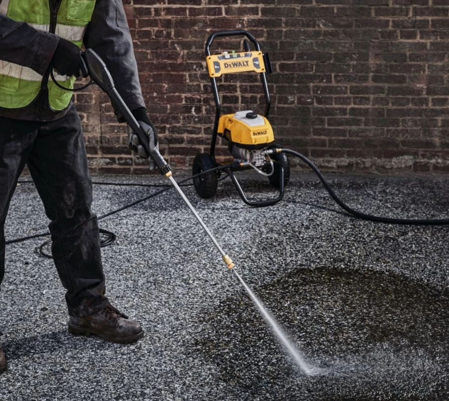 You can rely on the durable, mobile, and powerful DEWALT 2400 psi Pressure Washer, delivering enough power to handle your outdoor cleaning tasks. Be prepared to tackle just about any job or wash your vehicle with the accessories you need. This Cold-Water Pressure Washer comes equipped with five nozzles, including a Turbo nozzle and built-in storage for organization. Built to transport over rugged terrain, the pressure washer features premium 10 in. pneumatic wheels so you can take it to the jobsite. The 2400 PSI Cold-Water Pressure Washer is backed by a 3 Year Limited Warranty.