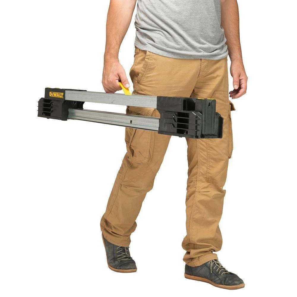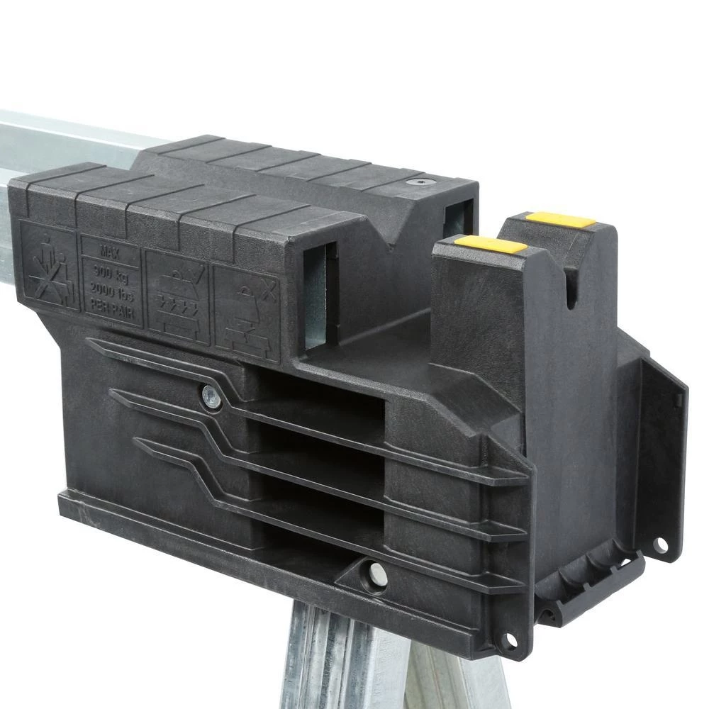 DeWALT has a well-earned reputation for designing and manufacturing the world’s most reliable and best-performing professional-grade power tools. Every product is forged with DeWALT’s unwavering commitment to producing tools and accessories that can withstand harsh jobsite conditions and meet the unyielding day-to-day demands of professional contractors. Now, DeWALT has applied that same no-nonsense, Guaranteed Tough philosophy to this new Metal Folding Sawhorse. This exclusive DeWALT Metal Folding Sawhorse has a robust structure specially designed to provide versatility uses with trigger clamps, 2 X 4 and v-groove, covering many applications required at the jobsite! When clamping onto 2 sawhorses can create a wide working center. This way all necessary jobs can be done on the surface.