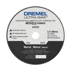 The US510 metal cutting wheel can cut a wide range of metals–both ferrous and nonferrous–including copper pipe, conduit, coated wire shelving, thin sheet metal, threaded rod, sheet aluminum and more. The US510 wheel features a 50% longer life than the SM510 Saw-Max metal cutting wheel, allowing you to cut more material. 3.5 In. diameter wheel.