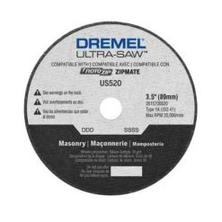 The US520 masonry cutting wheel can cut a wide range of masonry materials including stone, slate, cement board, bricks, concrete, cement backer board and more. The US520 wheel features a 50% longer life than the SM520 Saw-Max masonry cutting wheel, allowing you to cut more material. 3.5 In. diameter wheel.