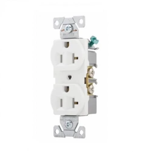 Eaton Wiring 20 Amp Duplex Receptacle, PVC, Commercial, Features: