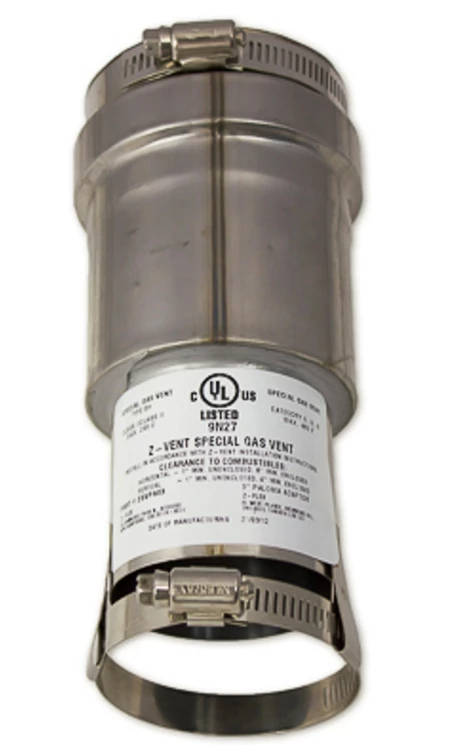 This stainless steel adapter can be used with the Eccotemp FVI12 and i12 series taking it from a 2.5″ to a standard 3″ vent system. Total length is 6″. Note, you may need to purchase a straight pipe piece with backflow preventer to ensure that freezing air does not come back through the vent pipe.
