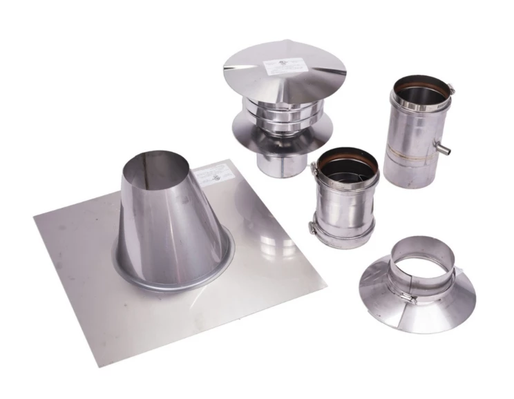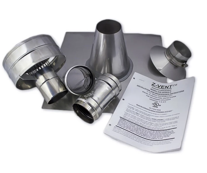 •1 x 4″ Rain cap •1 x 4″ Top support/Storm collar •1 x 4″ Adjustable roof flashing (normal 30-degree flashing) •1 x 4″ Condensation Drain Pipe •1 x 4″ Universal appliance adaptor with backflow preventer |
