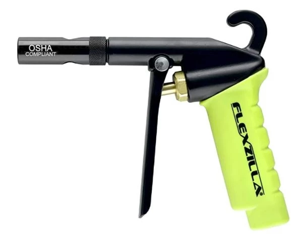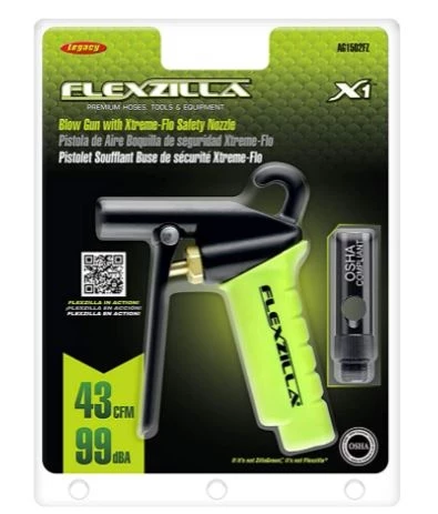 Introducing Flexzilla Blow Guns and accessories. Flexzilla features an ergonomically superior gun body for maximum comfort and control which reduces operator fatigue. A variable flow trigger regulates air volume precisely with maximum flow, equal to or greater than the competition. The exclusive modular accessories system allows the Flexzilla blow guns to be customized for extension length and tips needed for any job. Flexzilla blow gun safety nozzles are labeled to meet or exceed OSHA standards.