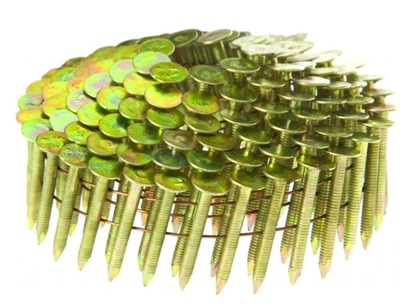 Primary applications include roofing and vinyl siding. Large 3/8 In. smooth head for an increased bearing surface. For use with most 15 Deg (degree) coil roofing nailers including Bostitch, Craftsman, DeWalt, Duo-Fast, Hitachi, Makita, Max, Paslode, Porter-Cable, Ridgid, Senco.