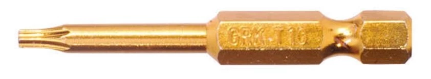 The T10 star drive bits are compatible with the #8 trim head screws and feature a yellow finish.