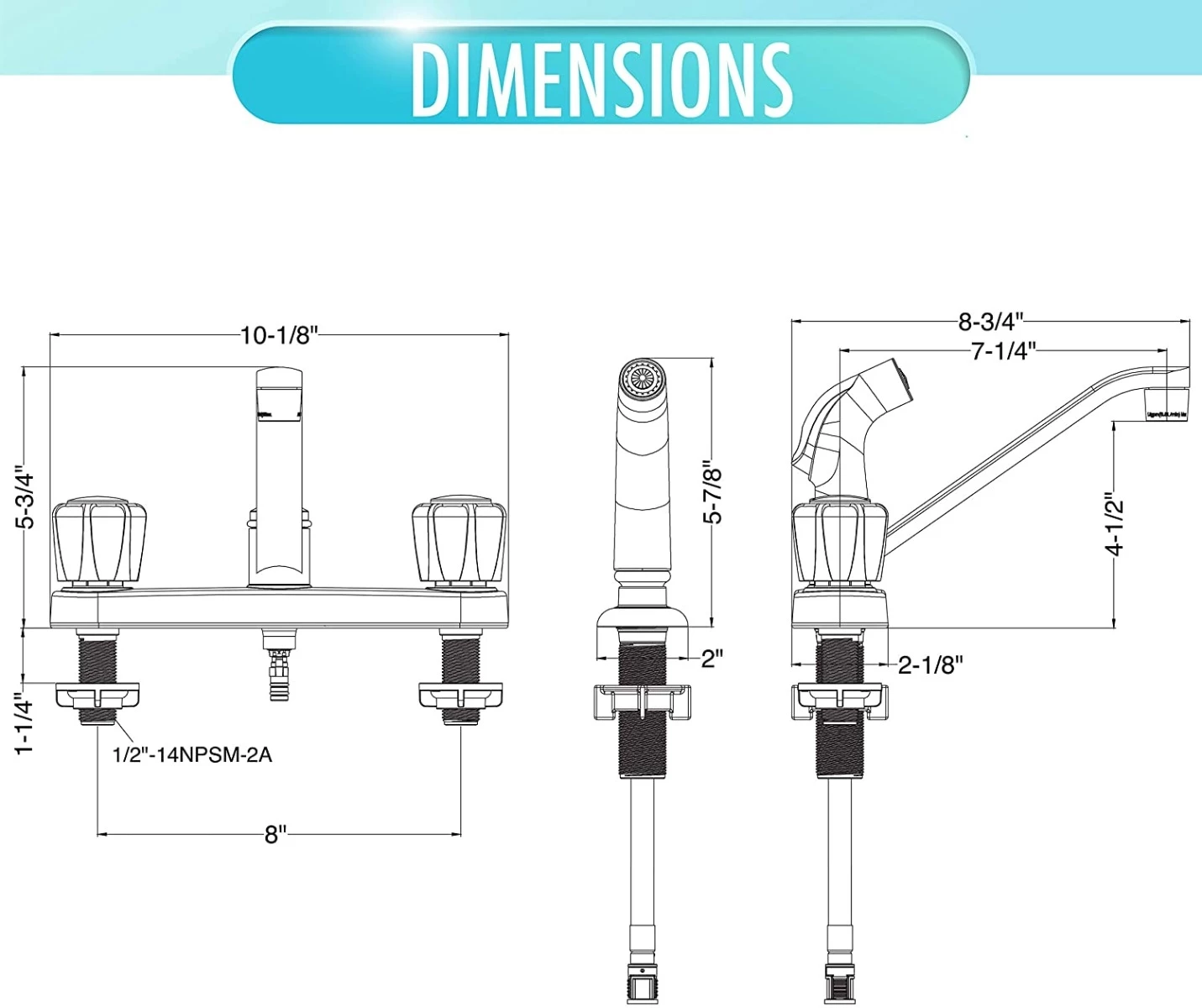 This two handle kitchen faucet with side spray will serve as the perfect stylish addition to your home. Featuring a polished chrome finish that offers a mirror-like, highly-reflective shine that reflects your personal style and complements a wide range of bath decor styles.