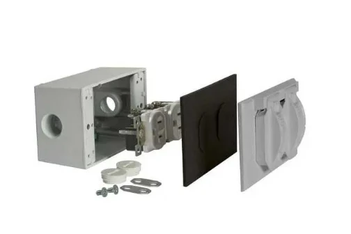 Hubbell 1-Gang Weatherproof Flip Cover Kit includes WR/TR Duplex, Box, and Cover. Constructed out of rugged die-cast aluminum. State-of-the-art powder coat finish provides maximum weatherability and scratch resistance. Self-closing lids assure weatherproof protection when the receptacle is not in use. No need to purchase separate components. Installation hardware, gasket, and multilingual instructions included. 15-Amp,125-Volt weather/tamper-resistant ivory duplex included.