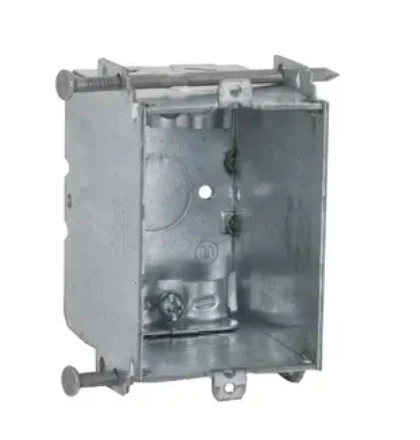 Hubbell 3 in x 2 in Switch Box is 2 27/32 inch deep with one 1/2 inch Knockouts. L clamps are provided for non-metallic sheathed cable (NMSC). Extra wide for ease of GFCI installation. Includes nails to fasten the box to wood stud. Non-gangable and Acceptable for use in 2-hour fire-rated walls.