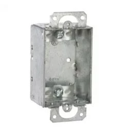 Hubbell 3 in. x 2 in. Switch Box, 1-1/2 in. Depth is non-gangable and features L clamps provided for non-metallic sheathed cable (NMSC). The plaster ears allow a box to be used in “old work” applications and is acceptable for use in 2-hour fire rated walls.