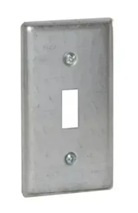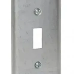 Hubbell 4 in x 2 in Handy Toggle Switch Cover is designed to match the contours of the box. All covers have captive screws and rounded corners. Pre-galvanized steel is unpainted and has no knockouts.