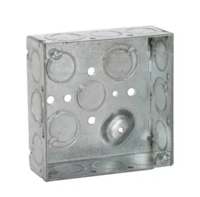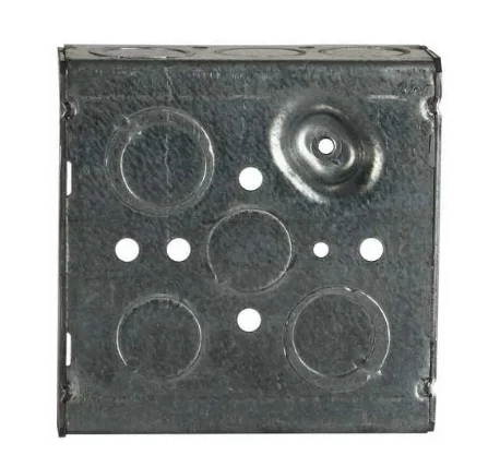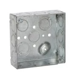 Hubbell 4 inch Square Raised Ground Box was designed to enclose electrical wiring, switches, receptacles or lighting fixtures. Constructed from 1/16 in. pre-galvanized steel. 8-32 cover mounting screws assembled. Features TKO knockout design provides installation flexibility and has Combination screw heads that allow quick installation. Made of Welded construction and includes Ten 1/2 in. knockouts and six TKO knockouts. Acceptable in 2-hour fire-rated walls. Available in 2-1/8 in. Deep and 1-1/2 in. Deep