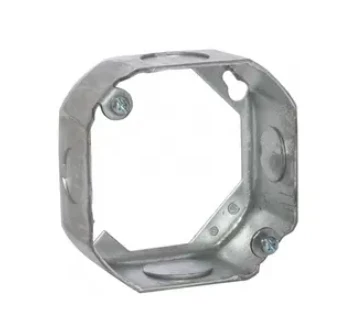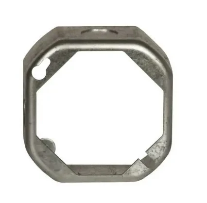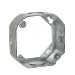 Hubbell Octagon Extension Ring Box that is 4 in. x 1-1/2 in. deep and supplied with two 1/2 in. and two 3/4 in. knockouts Made of drawn steel.