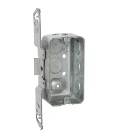 Hubbell 4in x 2in Handy Box includes TS Bracket and 1-7/8 inch Deep, with Eight 1/2 inch Knockouts. Drawn construction with raised ground and “TS” side-mount bracket. Has a total of 13.0 cubic inch capacity. Acceptable for use in 2-hour fire-rated walls.