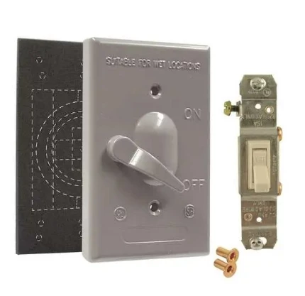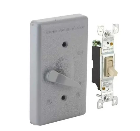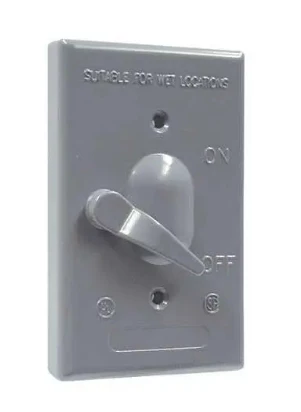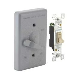 Hubbell Bell 1-Gang Weatherproof Cover made of rugged die-cast construction and State-of-the-art powder coat finish provides maximum weather ability and scratch resistance. Supplied with 125V, 15A switch – no need to purchase separate components. Includes gasket and mounting hardware. The switch is unassembled to the cover.