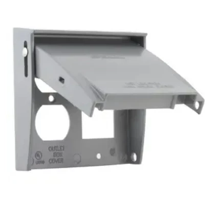 Hubbell Rayntite Weatherproof 2-Gang Duplex/GFCI. Made of rugged die-cast aluminum construction that was state-of-the-art powder coat finish in grey that provides maximum weather ability and scratch resistance. Includes self-closing lids to assure weatherproof protection when the receptacle is not in use. Can be vertically mounted to a box or device and able to be locked with a padlock that is 1/4in. cULus Listed and NEC Compliant. Nema Rating NEMA 3R.