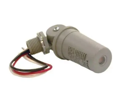 Hubbell Weatherproof Swivel Grey Photocell has a Built-in time delay that prevents operation triggered by auto headlamps or other temporary light flashes.
