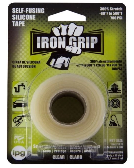 IRON GRIP Silicone Tape is a self-fusing, repair tape that conforms to any surface while providing a water-tight seal. Silicone tape creates a chemical, moisture-resistant barrier that fixes leaky pipes, hoses and insulates frayed electrical wires. It is easy to remove, leaves no sticky residue and protects from corrosion. Ideal for marine, automotive, Plumbing and household applications, Plus many more.