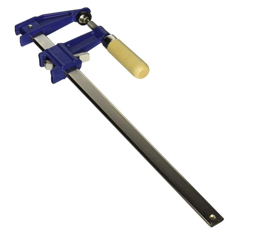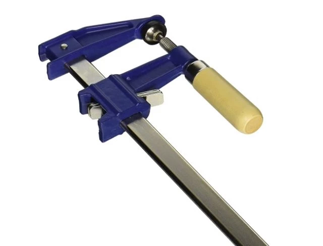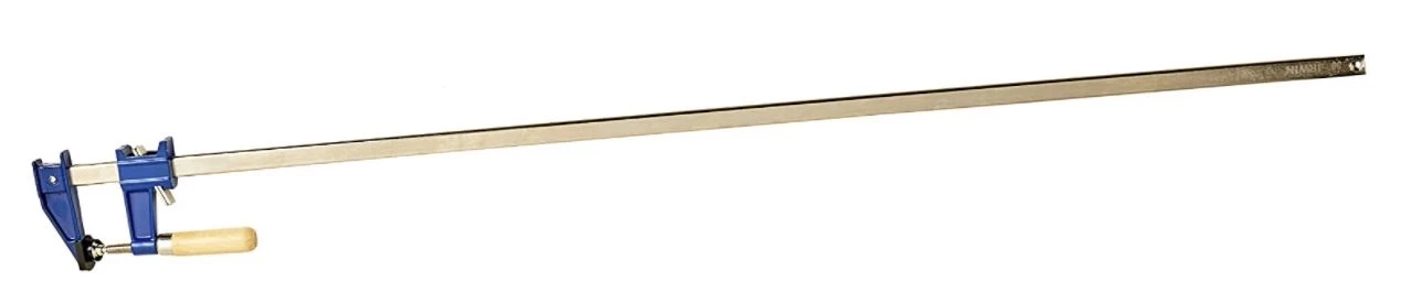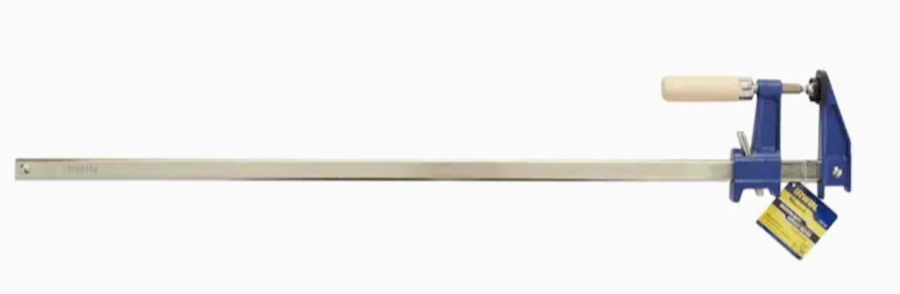 This bar clamp features an I-beam bar that reduces flexing and bowing. It has a clutch lock for easy movement along bar.