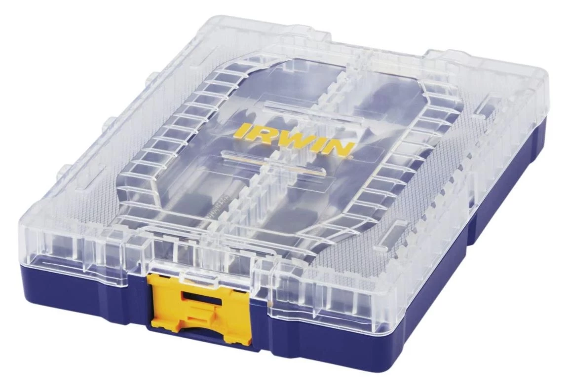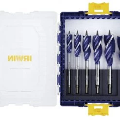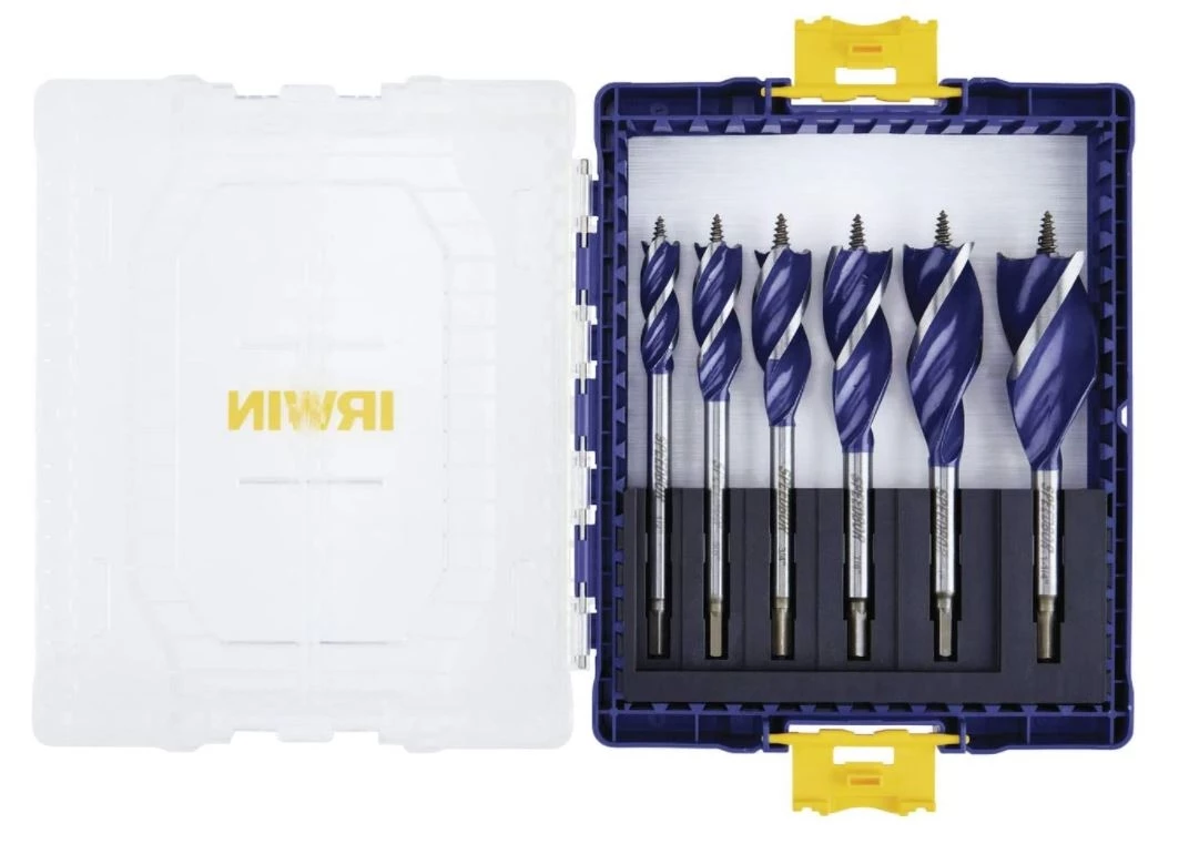 The newly redesigned IRWIN Accessory Storage Cases are visibly better. They have clear lids for easy viewing of content and are stackable for easy traveling and storage. They feature a patented bit-bar design for easy bit removal and customizable assortments of the wood drill bit set.The new SPEEDBOR Spade Bits now last 2 times longer and cut 2 times faster on average vs IRWIN SPEEDBOR prior generation in 1-3/8-inch Oak. The drill bit sets are designed with chamfered cutting edges for durability and feature a patented Blue-Groove design for chip removal.