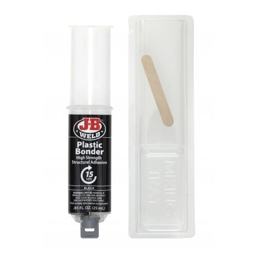 PlasticBonder™ is a quick-setting, two-part, urethane adhesive system that provides strong and lasting repairs and works on thermoset, carbon fiber composites, thermoplastics, coated metals, concrete & more. PlasticBonder™ has a 1:1 mixing ratio, sets in 15 minutes and can be sanded after 30 minutes. With a tensile strength of 3770 PSI, PlasticBonder™ sets black in color and cures to a hard, permanent bond.