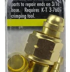 Each kit contains all parts necessary to repair hose ends including 2 brass hose ferrules that can be crimped with K-T 3-7605 crimping tool, two hose nipples, one oxygen nut and one acetylene nut.