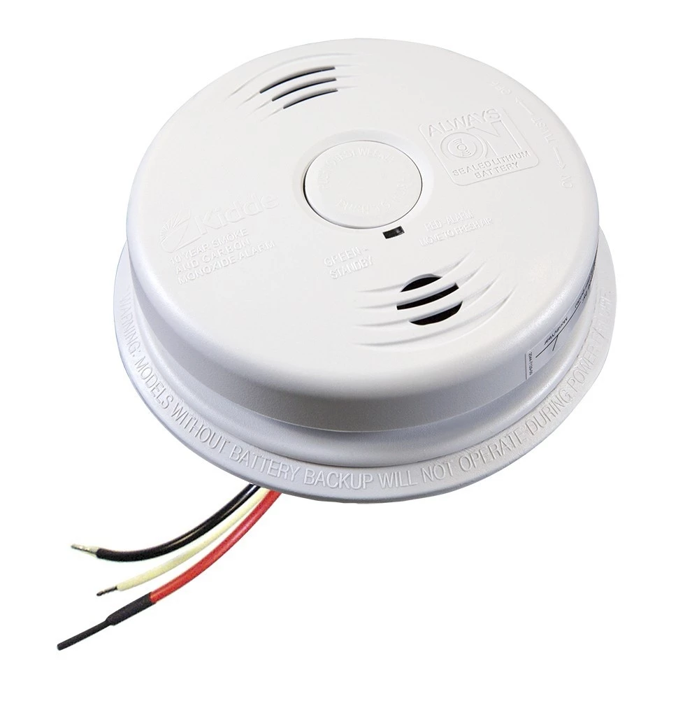 The Kidde i12010SCO is a hardwired combination smoke and carbon monoxide alarm that contains a 10-year, sealed battery backup. This alarm uses breakthrough technology to offer a fast response to real fires, including smoldering and fast-flaming, as well as protect you from carbon monoxide and dramatically reduce the chance of nuisance alarms.