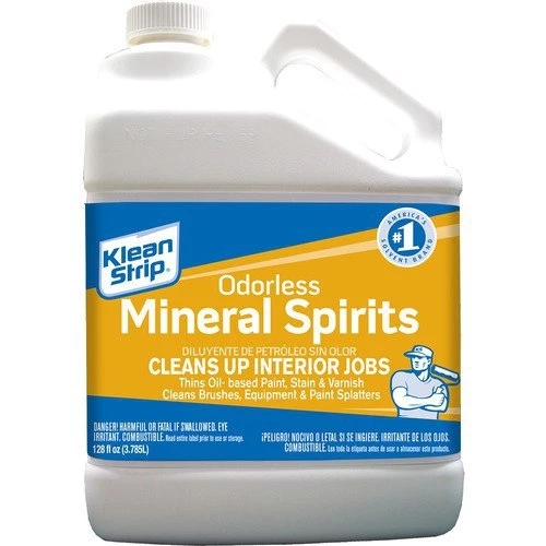 With Klean-Strip® Odorless Mineral Spirits, you can achieve great results indoors without being subjected to harsh fumes. This premium, highly refined solvent formula effectively thins and blends well into oil-based paint, stain and varnish, produces very low odor, dries with minimal residue, and is an excellent cleaner for brushes and equipment. It also removes and dissolves grease, grime, and oil from most surfaces.