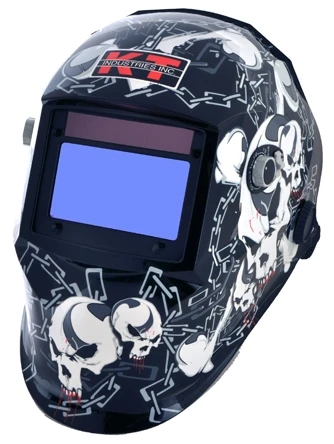 Sturdy construction Helmet is made of lightweight, molded nylon with a ratcheting headgear and moisture-absorbing lining on the headband. Customized Fit Designed and equipped with a special up/down, forward/backward headband mechanism, reducing fatigue of the head and neck. Sensitivity factor The sensitivity adjustment knob is located outside the helmet making it more convenient for the operator while at work. Variable shades Adjust shade selection from 9 – 13 with the turn of a knob on the outside of the helmet. Shade Guide Table is provided for easy and accurate number selection. Dark-to-Clear Delay Upon striking an arc, the filter automatically changes from clear to dark in only 1/30,000 of a second. Operator sets the delay time for the filter screen to change from dark to clear state – short, medium or long. Replacement lenses Changing scratched or damaged lenses is fast and easy! Clear outside lens and inside lens are available from K-T Industries. Dual purpose Set selection on inside of helmet for WELDING or GRINDING. UV/IR Protection Auto-darkening filters provide full protection for the user’s eyes and face, even in the light state. The UV/IR protection level is up to Shade 16 (DIN) at all times. Conforms with ANSI and CE safety standards. Larger Lens Size Increased field of vision makes it easier to see the working parameter. Model Nos. 4-1070, 4-1071, 4-1072, 4-1073 now measure 3.86” x 2.17”. Model No. 4-1050 measures 3.86” x 1.69”. Each has four optical sensors. Battery and solar power The helmet is powered by high performance solar cells, and has two built-in, 3V lithium batteries as power back-up. ADF lens turns off automatically after 5 minutes of inactivity to conserve power.