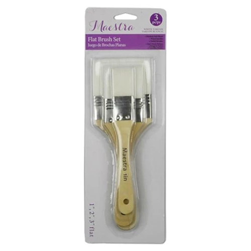 Linzer® Maestra 3-Piece Flat Utility Paint Brush Set is made of white Taklon filament for durability. Perfect for all acrylics, watercolors, and oils. Ideal for general painting as well as glazes, gessos, washes, and shading.