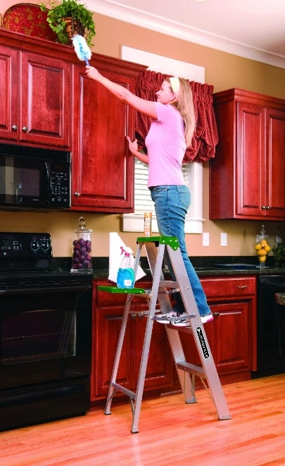 The Louisville AS4004 step ladder meets or exceeds the safety standards set by ANSI, CSA, and OSHA.