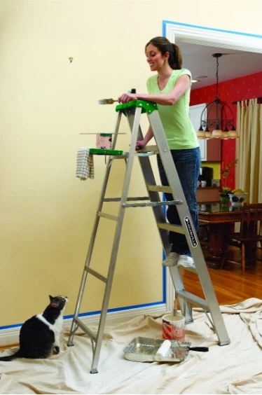 This Louisville 6 foot lightweight aluminum step ladder has a load capacity of 225lb, rated ANSI Type II. This ladder is equipped with a molded top with handyman’s tool slots, molded pail shelf, slip-resistant rubber feet, steel gusset bracing, and pinch-resistant spreader braces. This ladder is ideal for painting.