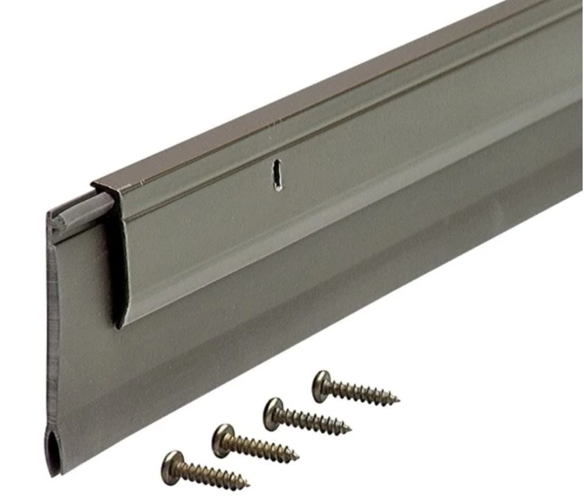 M-D Door Sweep, Deluxe, M-D, 1/4 in Width, 36 in Length, 2 in Height, Premium, For Protection Against Drafts, Moisture, Dust and Insects. Vinyl with heavy aluminum construction to create a high quality, long lasting door sweep. Provides a tight long lasting door seal. Seals gaps up to 3/4″ high. Slotted holes for easy adjustment.Â