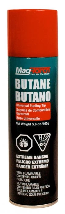 5.6 Ounce Universal refill butane cylinder, standard fill tip on cylinder will fill most butane torches and accessories. Additional tips are available in plastic protective cap.