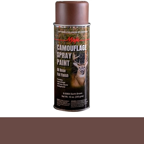 Majic Camouflage Paint is a flat, non-reflective finish that is water resistant. It provides camouflage with any nature background. Perfect for use on vehicles, boats, trailers, duck blinds, tree stands, guns, bows and much more. Finish forms tough bond that withstands harsh weather environments. The color selection is perfect for breaking up outlines and shapes allowing you to blend with almost any nature background.