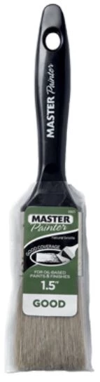 Master painter select, 1.5 inches, china bristle paint brush, 100% china bristle, plastic handle, for use with oil base paints & finishes.